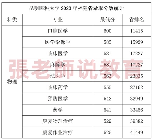 昆明医科大学2023年在福建省招生类型是普通类本科批,并且只招物理类高考生,其中录取最低分525,省排名41449。
