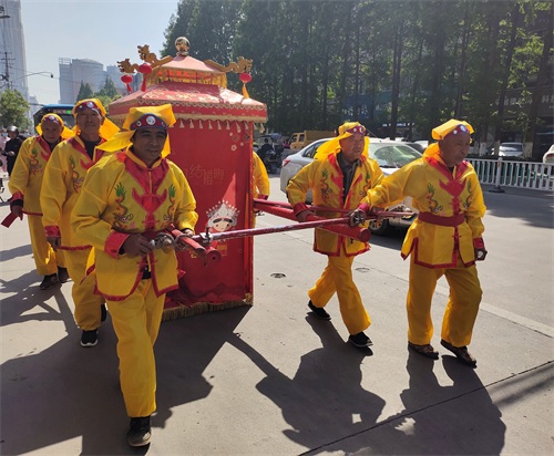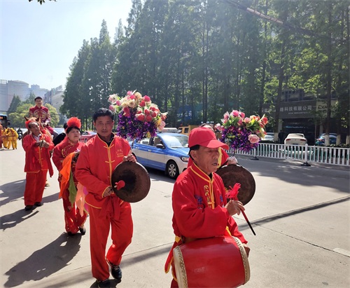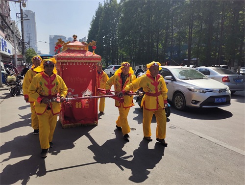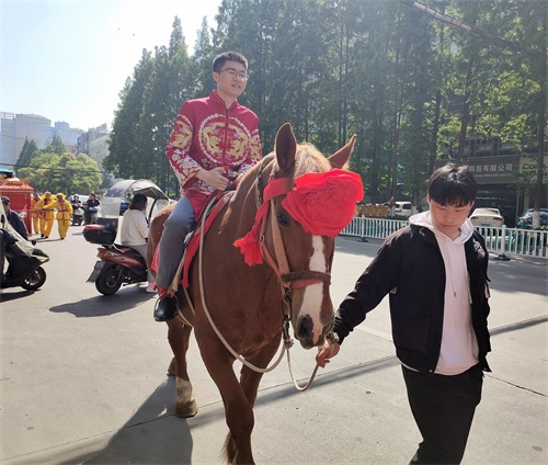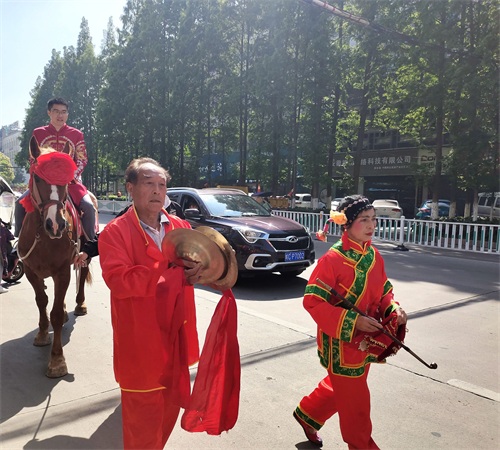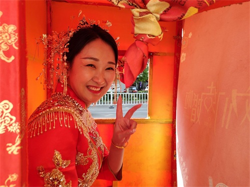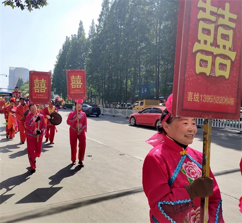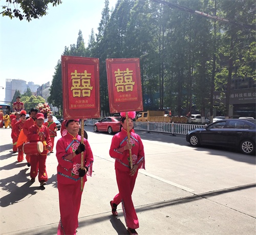 今年五一长假,蚌埠市娶媳妇、嫁闺女办喜事的特别多,结婚仪式各式各样,骑马坐轿这种传统形式比较少见。偶遇一对,手机记录。但是现在轿夫有点偷懒,不用抬,轿子下面装上滑轮,推着就行。伴郎、伴娘全部步行,很环保。