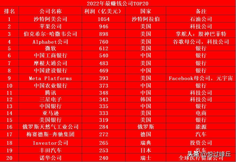 2022年全球最赚钱公司你知道哪些?有些会颠覆你的想象