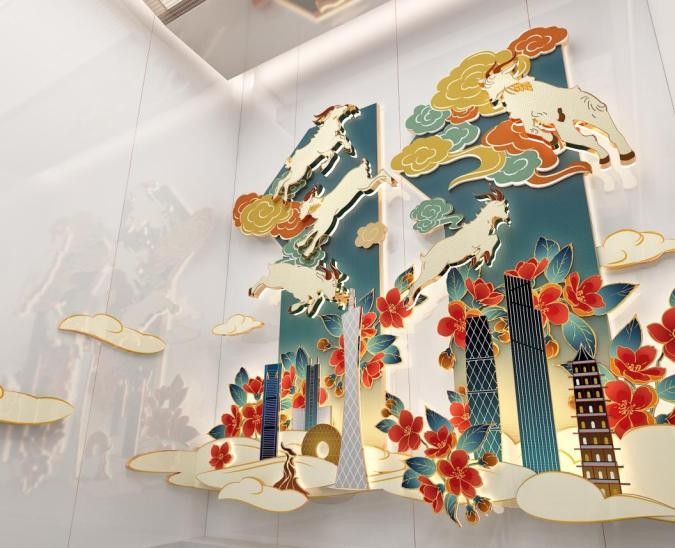 广州火车站(越秀区):主题“粤彩鎏金”,以“广彩瓷”展现岭南工艺的之精巧与瑰丽,结合“鎏金”古老工艺,象征广州的繁荣昌盛。