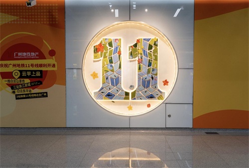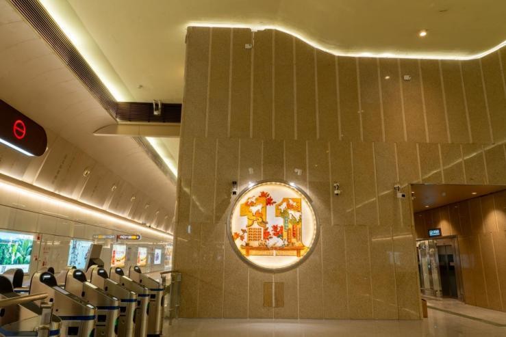 地铁十一号线是“全国首条非遗示范线”,全线各个站点融入广州的世界级、国家级和省市级非遗元素,在城市的地下空间,制作一幅44公里的非遗艺术与岭南文化长卷。