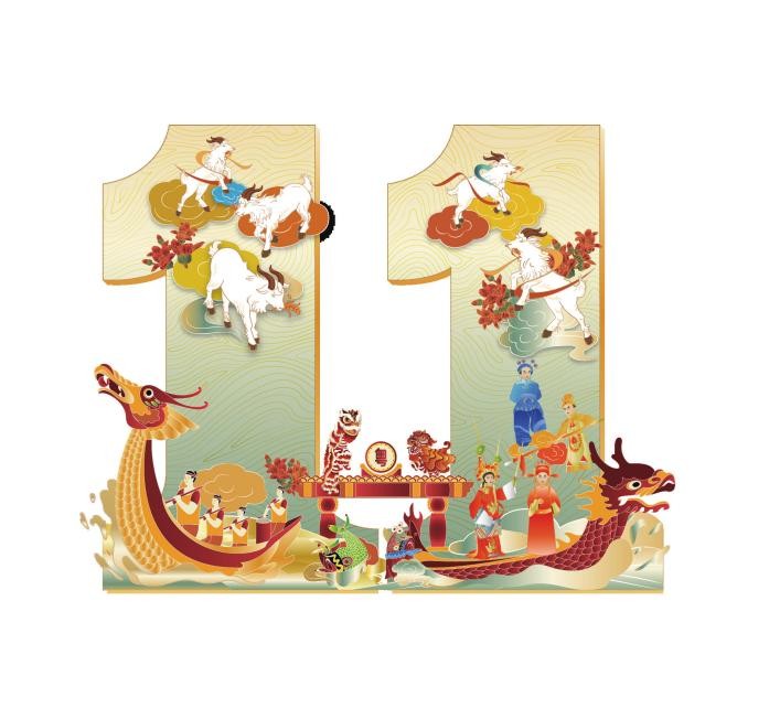 传说深入人心,文化底蕴深厚,领秀设计团队巧妙地将这一主题与广州的“穗城”之名、广州市花“木棉花”等元素结合,打造出独具特色的十一号线文化图腾。