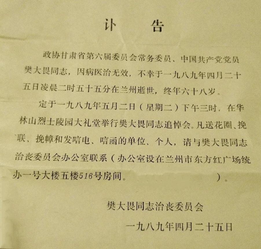 1986年,时任甘肃省政协常委的张克勤即樊大畏感伤地回忆道: