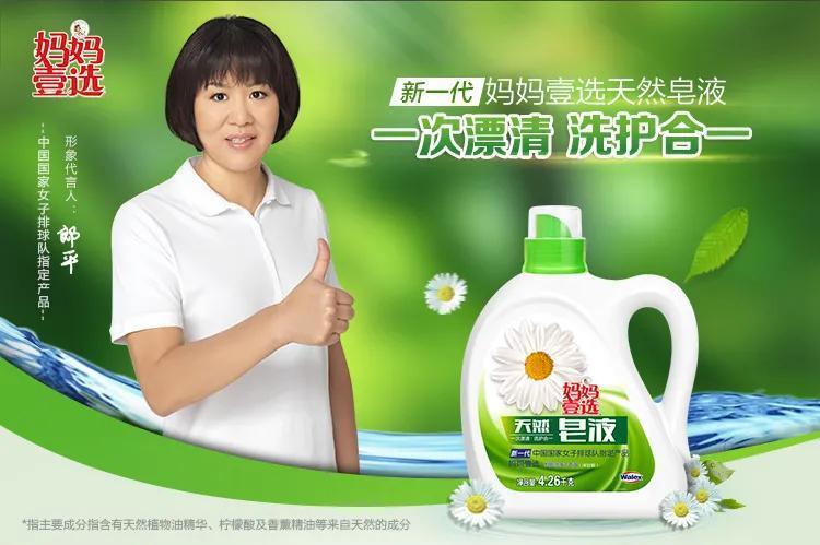(7)2015年3月,郎平代言了威露士旗下产品妈妈壹选天然皂液。此前,她还曾代言过妈妈壹选的餐具净。