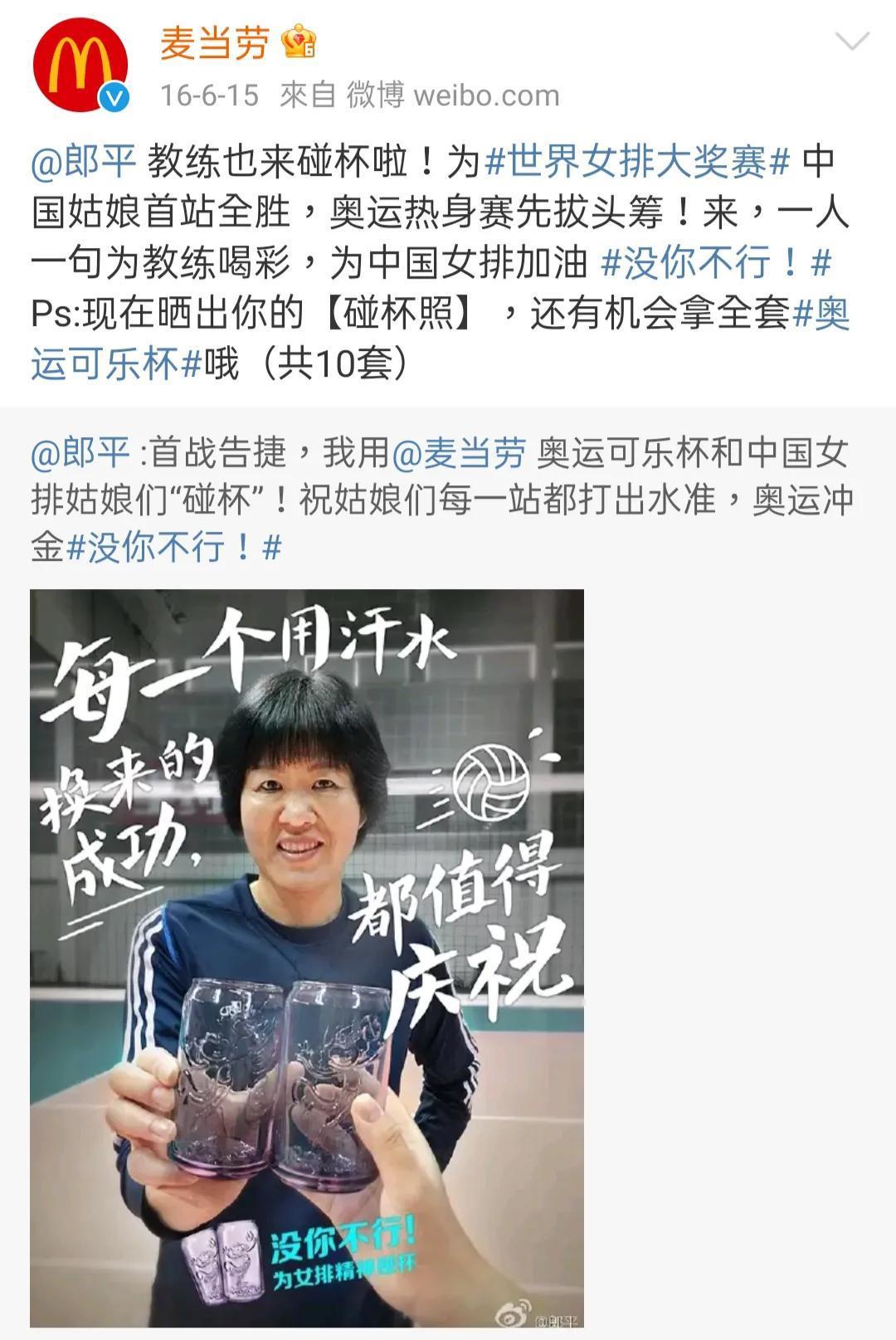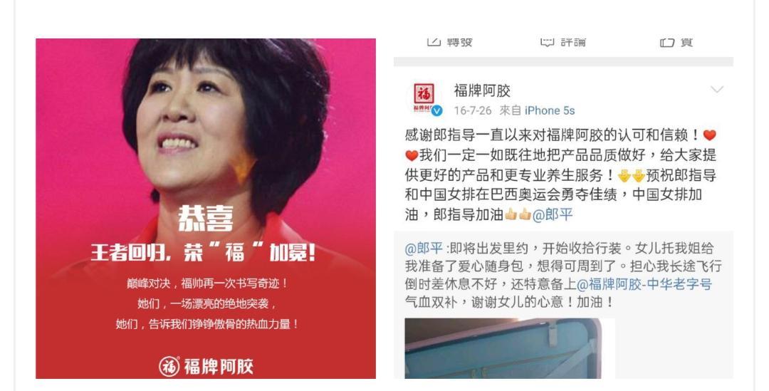 (10)2016年7月,郎平与福牌阿胶合作推广。