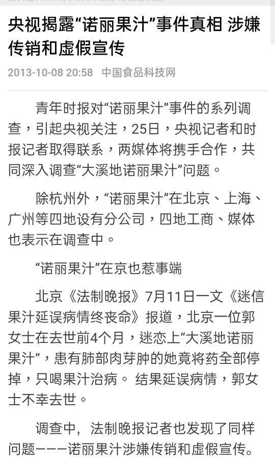 央视揭露诺丽果汁涉嫌传销和虚假宣传