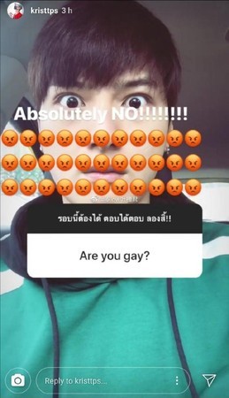 曾有网友在IG限时动态向Krist提问:“Are You Gay?”(你是同志吗?)被他回以“Absolutely NO!!!!!!!!!”(当然不是+很多个惊叹号),这个回应让Krist被质疑靠演BL剧获得知名度,却根本不尊重同性恋。