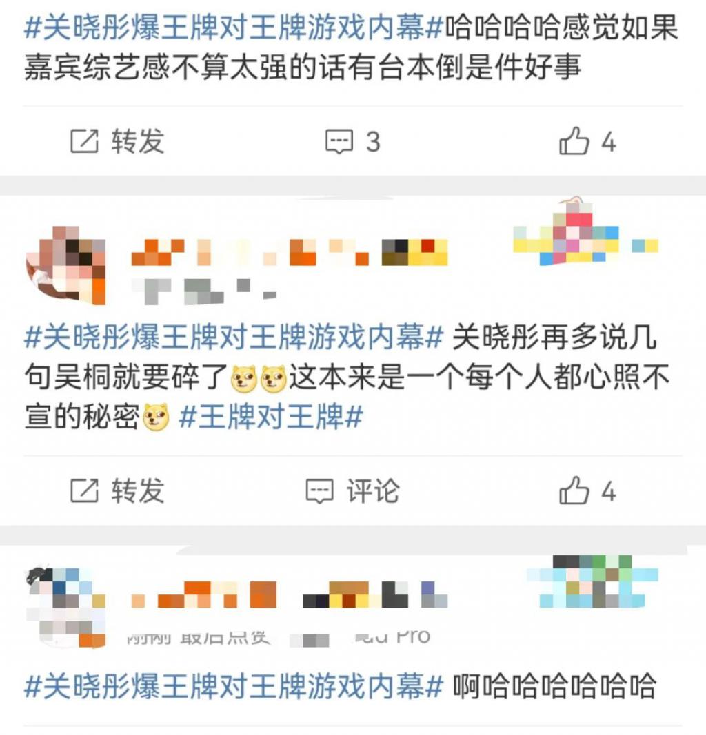 关晓彤表示,以前没声的时候我们会演。 她说 " 王牌 " 的看口型猜词游戏,有时候耳机里确实没声,刚开始遇到会假装有声,后来遇到就直接说这没声。