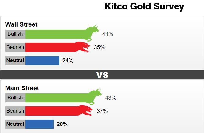 Kitco的每周黄金调查结果显示,华尔街对下周的金价略微看好。在参与调查的17位分析师中,有7位(41%)预计下周金价将上涨。与此同时,有6位分析师(35%)短期看空黄金,有4位分析师(24%)持中性看法。