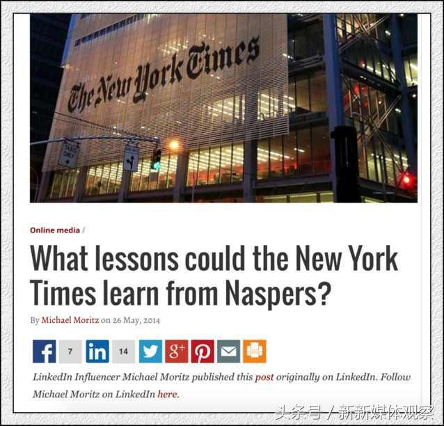 这是一个名不符实的译名,仅指向过去,不代表现在与未来。但是一家伟大的公司,为什么要羞于面对自己的过去呢?又怎么可以背弃自己的过去呢?知道自己从哪里来,与明白自己要去哪儿,具有同样重要的意义。而本文的整体语境与所有场景,全部关于报业及其哺育的新媒体业。因此,Naspers = 南非报业。