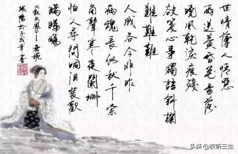 表妹唐琬是在一个秋天忧郁而逝的,临终前,她还在念着表哥那首被后人传唱的《钗头凤》。自从这个春天,和陆游在沈园不期而遇后,病榻之上的唐琬就在低吟这首伤感的词。