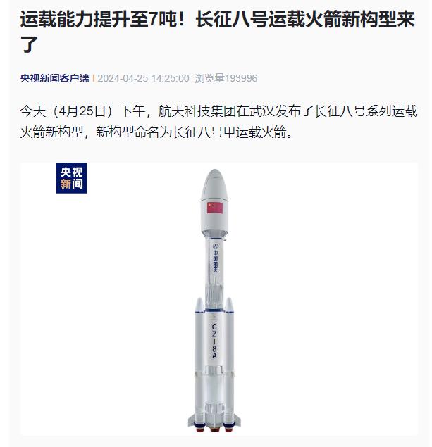 据 IT 之家此前报道,长征八号甲运载火箭运载的能力更大长,运载效率更高,可以提供 700 公里太阳同步轨道,从 3 吨到 5 吨到 7 吨梯度的运载能力。