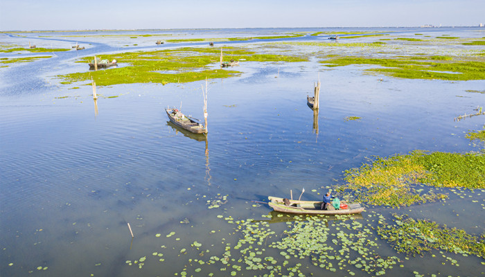 太湖地处亚热带,气候温和湿润,属季风气候。太湖河港纵横,河口众多,有主要进出河流50余条。太湖水系呈由西向东泄泻之势,平均年出湖径流量为75亿立方米,蓄水量为44亿立方米。太湖岛屿众多,有50多个,其中18个岛屿有人居住。