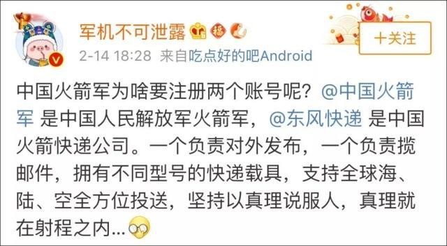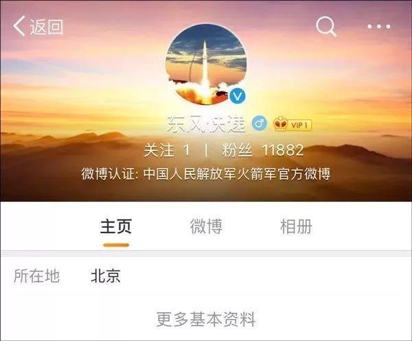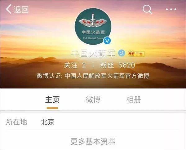 其实除了@东风快递,这次火箭军还开通了另一个账号@中国火箭军,两个账号的认证都是“中国人民解放军火箭军”。