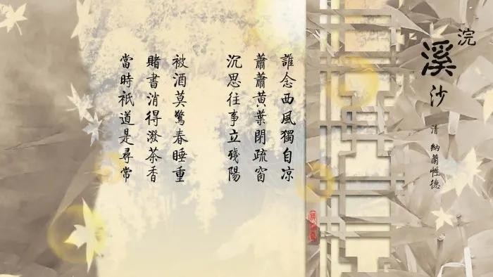 或有人问,纳兰词中的失恋者究竟是谁?对于这个问题,今人已无法确知。过联系清人笔记中屡屡出现的关于纳兰性德失恋的传说,我们把词中的孤独公断为词人的自况,想来并非郢书燕说。倘若此论不至大谬,那么,这阕《浣溪沙》能写得这般情真意切,感人肺腑,便是顺理成章的事情了。