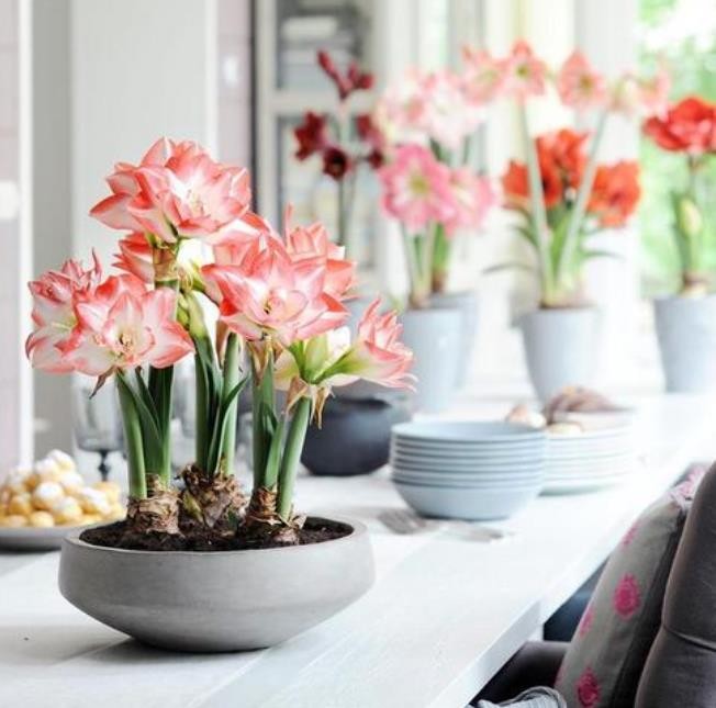 朱顶红栽种好以后,要养护在温暖舒适的环境中。放置在光线明亮、通风好,且没有强光直射的窗前,春秋接受全日照,让植株有效进行光合作用,开花就会又大又艳丽。夏日要适当遮阴,不可暴晒,冬季要注意保温,防止冻伤。日常给朱顶红浇水要不干不浇,浇则浇透,不可积水。每个月施一次复合肥。在开花之前要追施1-2次磷酸二氢钾,在开花的时候停止施肥。否则肥大会让花朵谢得早。