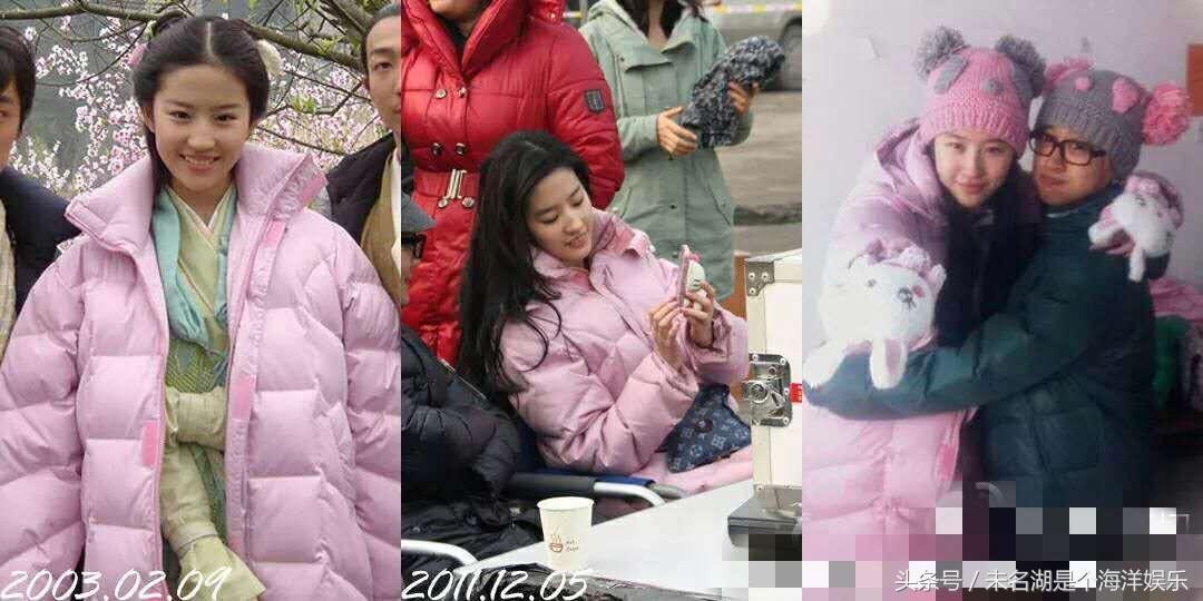 刘亦菲的这件粉色羽绒服从2003年接拍《天龙八部》就开始穿,穿了14年整了。