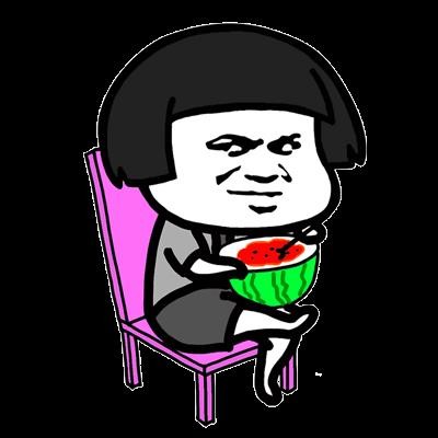 蘑菇头翘腿吃西瓜