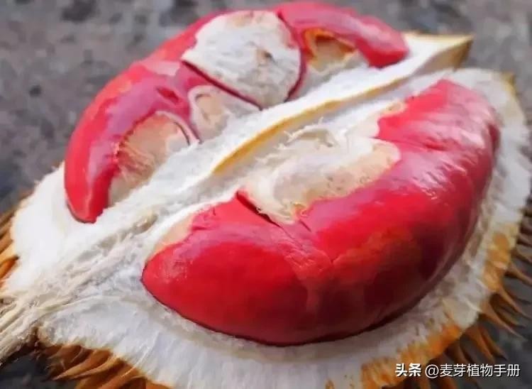 这种水果有很臭,当地人称“赌尔焉”,长得和中国的水鸡头一样,长七、八寸,皮生尖刺,成熟时会裂开,散发出像腐烂的牛肉一样臭臭的味道。果实里面有白肉十四五块,可以食用而且很美味。果肉中有种子,炒着吃,味道和栗子一样。