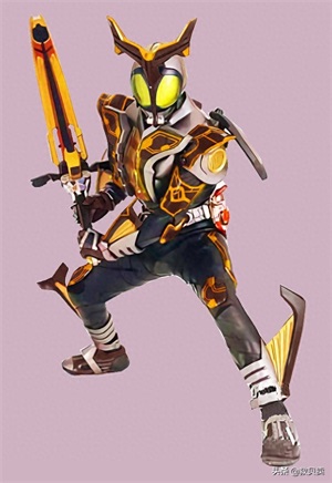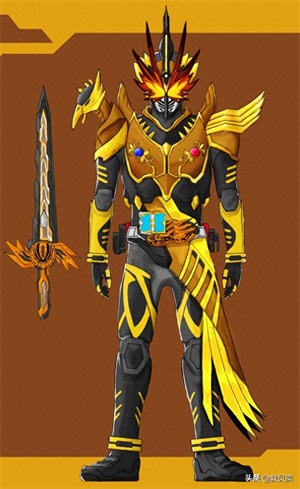黄金霸剑:假面骑士霸剑的最终形态,由假面骑士奥丁与霸剑融合而成。创作思路源自两位骑士的主题都是“不死鸟”,而两位骑士的融合也表明能力的融合,所以霸剑还能穿越到镜世界,并且获得了“时间暂停”的能力,这种搭配堪称无敌,应该不是扔到太阳中就可以解决的。