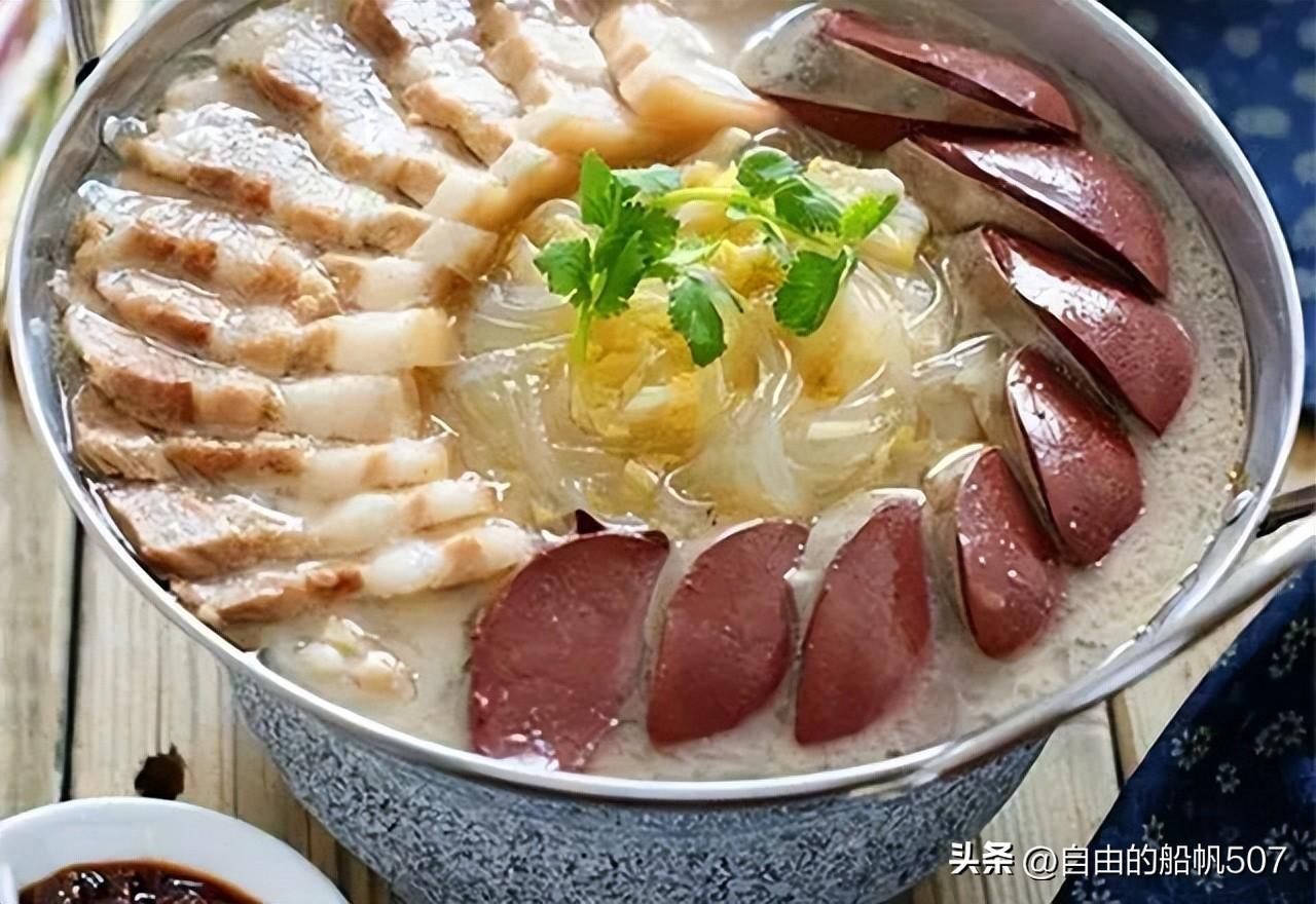 白肉酸菜血肠是满族传统食品,普遍为各族人民所喜爱。猪肉和血肠将成菜养得醇厚浓郁,白肉肥而不腻,血肠入口即化,加之酸菜滋味酸爽解腻,整道菜丰富而扎实,相当有料也非常下饭。