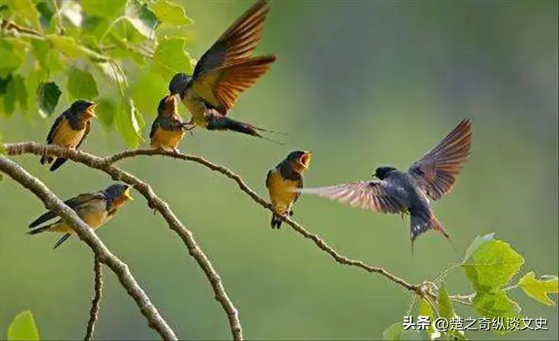 几只早出的黄莺争相飞往向阳的树木,谁家新飞来的燕子正忙着衔泥筑巢。