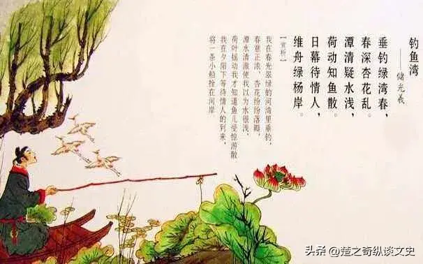 点评: 这首诗写一个青年小伙子,以“垂钓”作掩护,在风光宜人的钓鱼湾,焦急地等待着心上人的到来。