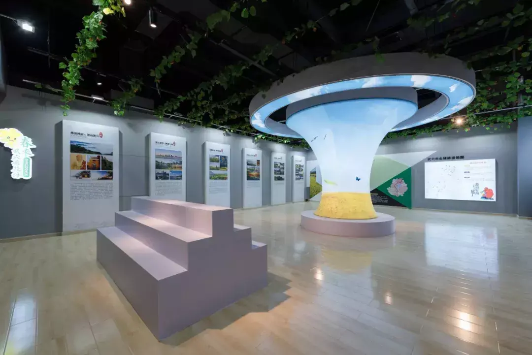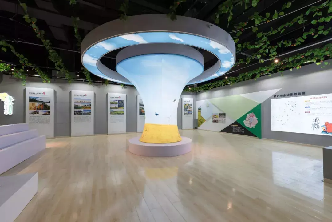 武穴文化旅游展馆以“千年广济 大美武穴”为主题,分非遗文化和文化旅游两大展示部分,其中文化旅游展馆主要以油菜花海为亮点,以全域旅游为体系,分匡山西游、湿城慢城、美丽乡村、多彩港城、油菜花海、旅游商品六大部分,借助声、光、电、3D技术深度展示武穴文化旅游特色。