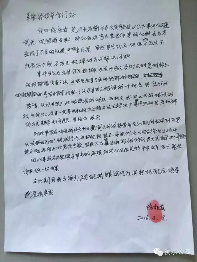 事件发生后,衡水市公安局党委高度重视,市县两级公安机关立即组成工作组,就视频当事人徐某反映的情况进行调查。