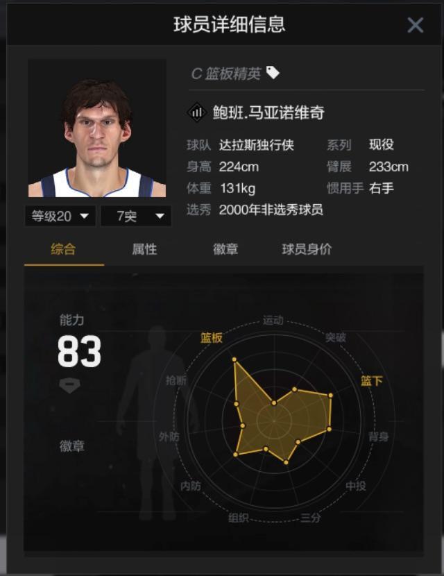 鲍班有着224的身高,233的臂展,是2kol2这个游戏之中最大的模型,属于“模型>能力值”的典型代表,更可怕的是,他不需要满突,1突就可以使用,与满突的差别也就是在于中投的稳定性。