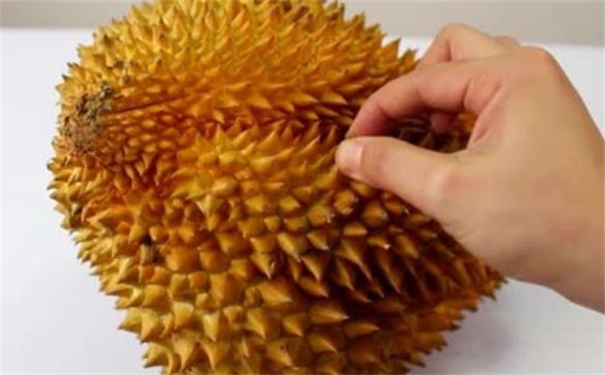 第四,看果刺。榴莲表面的果刺排列越密集,果实就越甜。如果果刺稀疏,可能是果皮厚、果肉少的情况。