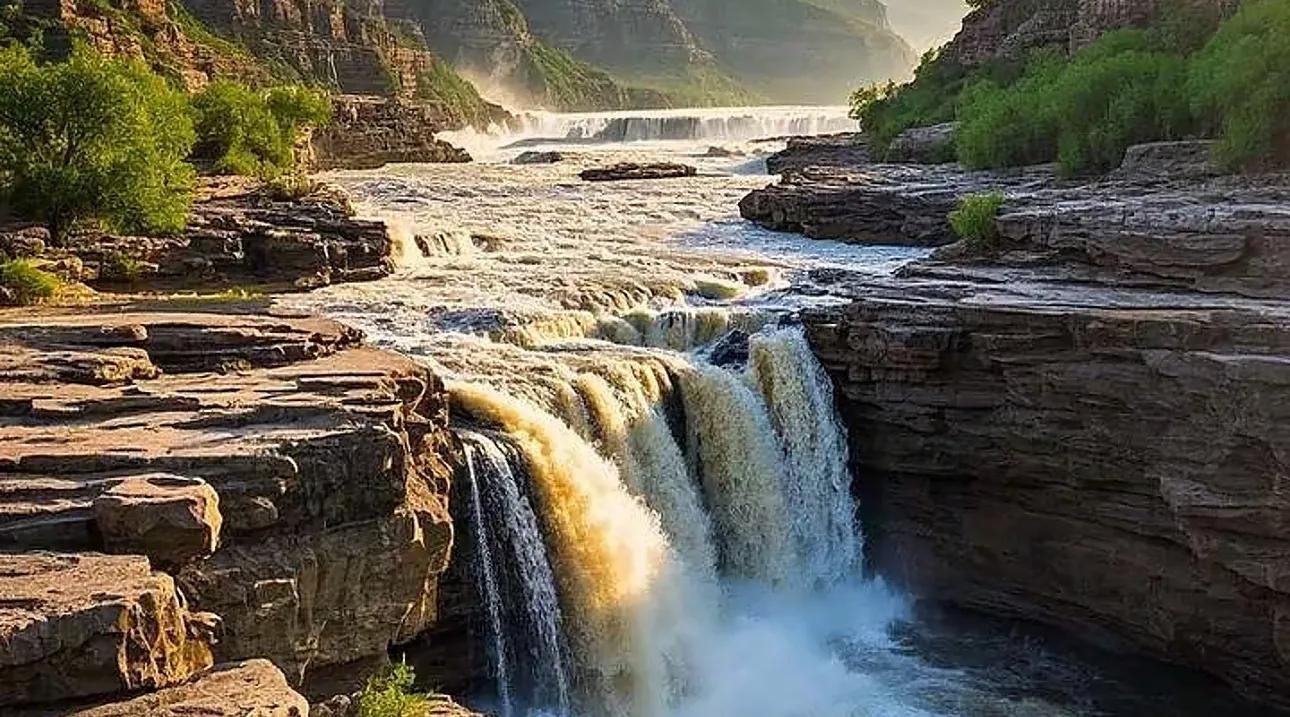 世界最大的黄色瀑布,黄河在此收束为30米宽,坠入20米深槽,形成“千里黄河一壶收”的奇观。