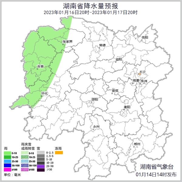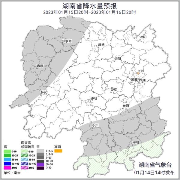 湖南省气象台提示,注意加强防范近期大风、剧烈降温、雨雪冰冻,以及可能出现的道路湿滑(积水、结冰)、雨雪低能见度天气对春运水陆交通、户外临时建筑和作业安全的不利影响!