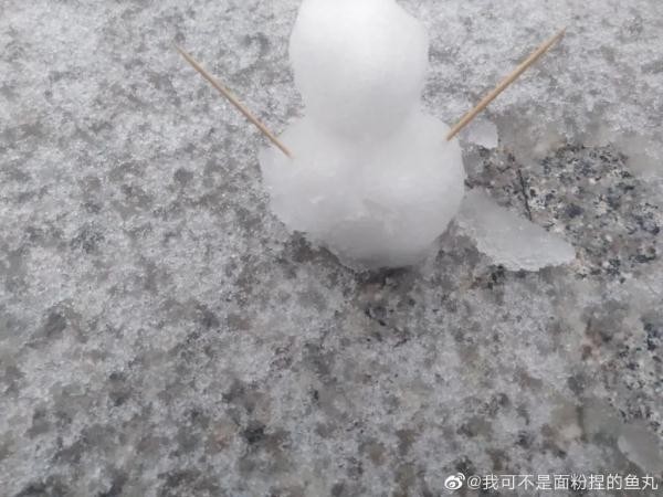 湖南网友用栏杆上的雪拼成小雪人