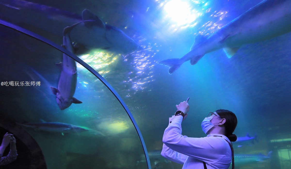 馆内有100多条活的鲟鱼与鳇鱼。