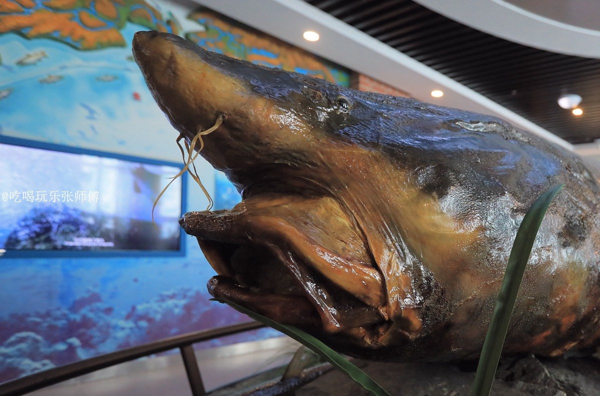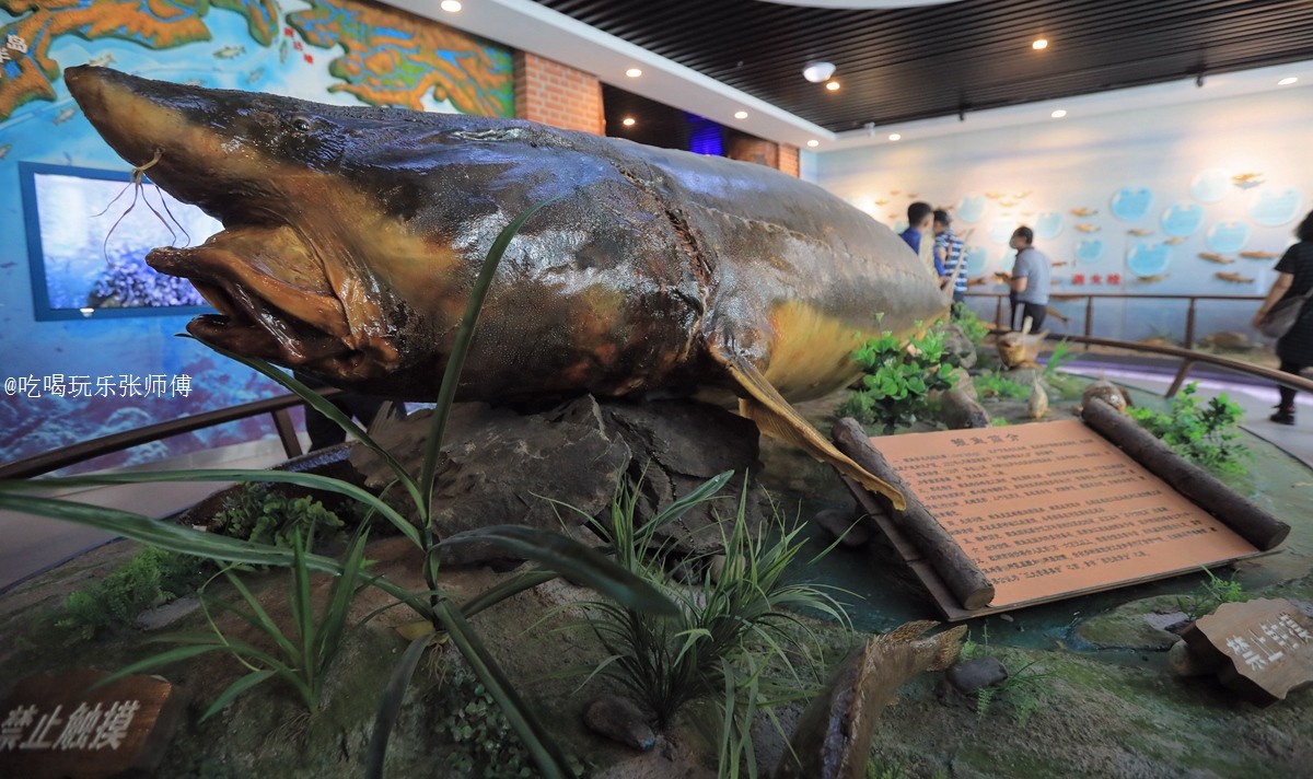 这里最珍贵的,是一条在抚远流域打出来的大鳇鱼制成的标本,其体长3.6米,重1128斤,年龄108岁,堪称镇馆之宝。