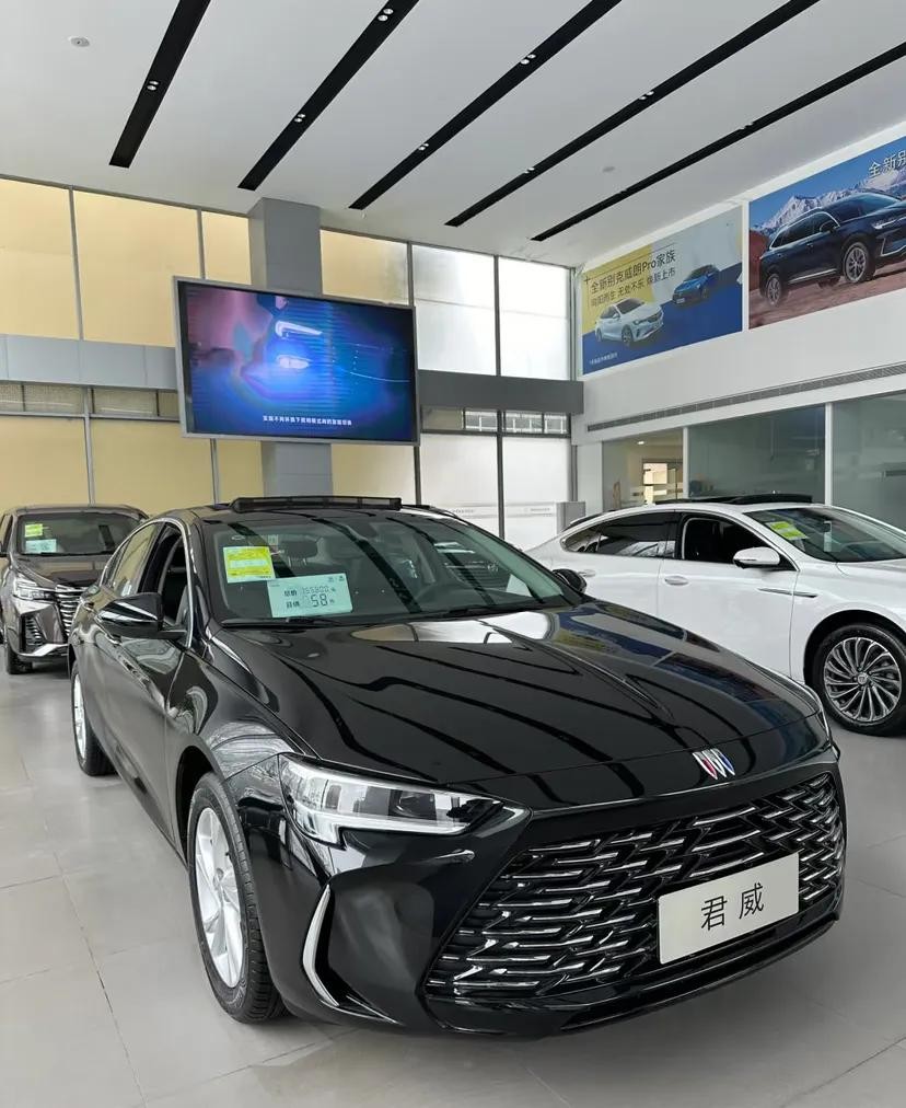 第三台就是别克的君威,标准的B级车,空间大,价格低,动力强,骨架硬,169匹马力匹配9AT变速箱,价格159800,优惠55000,裸车104300,它卖得比速腾还便宜。它是10万级区间性价比最高的合资B级车之一,甚至比我们的国产A级车卖得都便宜。跑高速非常稳,而且油耗低。喜欢大空间、操控性和动力的直接冲,性价比极高。