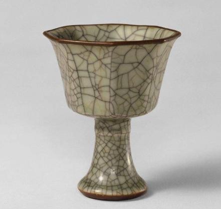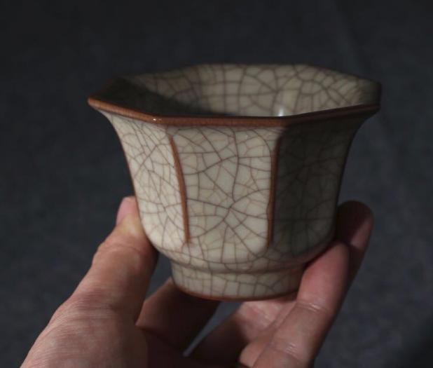 宋朝哥窑八方杯甚是传世珍品,其特征非常明显:开片较大,为冰裂纹;开片细小而密集,形成一种无规则的蜘蛛网线,即百圾碎。