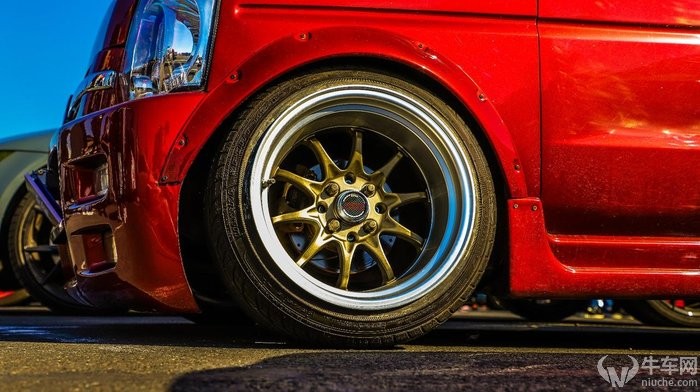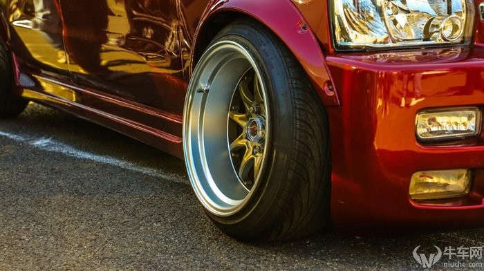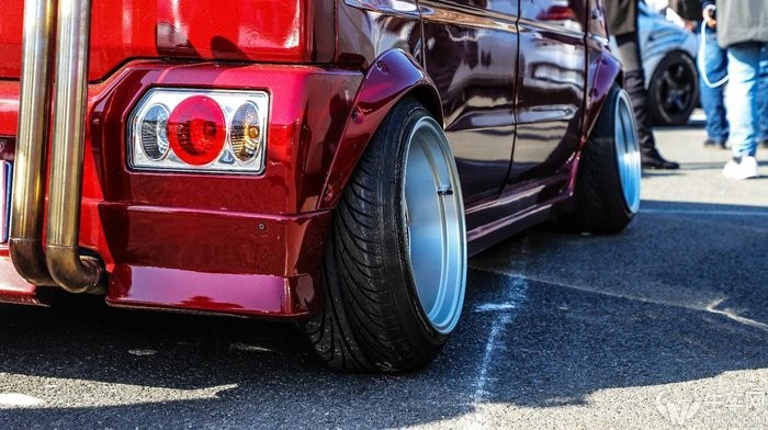 巨大的前后轮倾角设定是这类风格改装中必不可少的,一方面能够获得低趴的姿态,另- -方面在使用J值与ET值很暴力的轮圈时也不会和翼子板发生剐蹭。