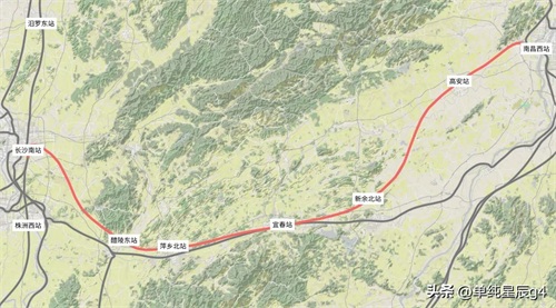 南昌至长沙段全线设置车站7座,分别为南昌局集团有限公司管辖的南昌西站、高安站、新余北站、宜春站、萍乡北站,广州局集团有限公司管辖的醴陵东站、长沙南站。