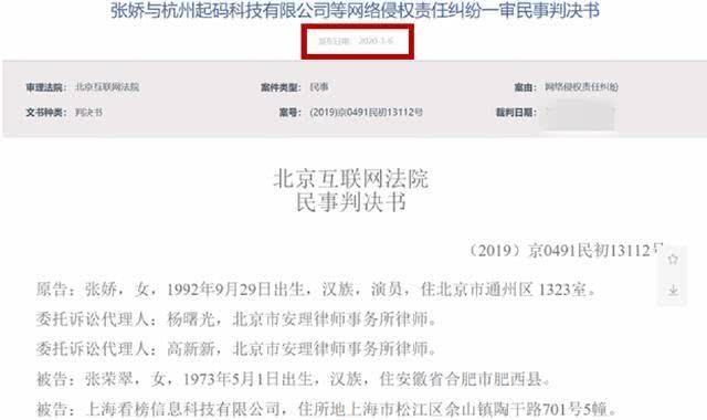 再次之后, 张天爱使用了法律的武器来维护自己,直到2020年3月6日,事情终于圆满的成功,法院在当日公布了张天爱名誉权案胜诉的判决书,对于张天爱来说,自己终于摆脱了这条假新闻,证明了自己的清白。