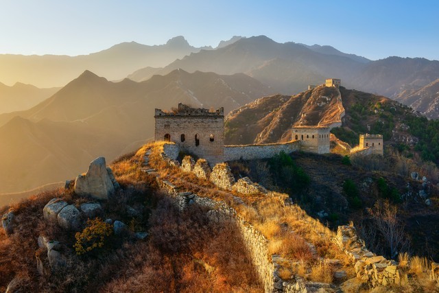 中国的长城:作为世界上最长的防御工程,长城是中国的标志性建筑之一,也是世界文化遗产。