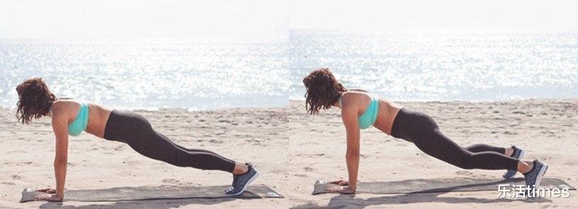 像是这款变化动作,是在棒式撑体后加入了一次伏地挺身。但这边我们可以适度的调整难度,初学者可以直接趴在地面上,再撑体做跳跃;中阶者可以做1次伏地挺身;进阶者可以增加次数到3次,但不要次数过多以免力竭,容易受伤。