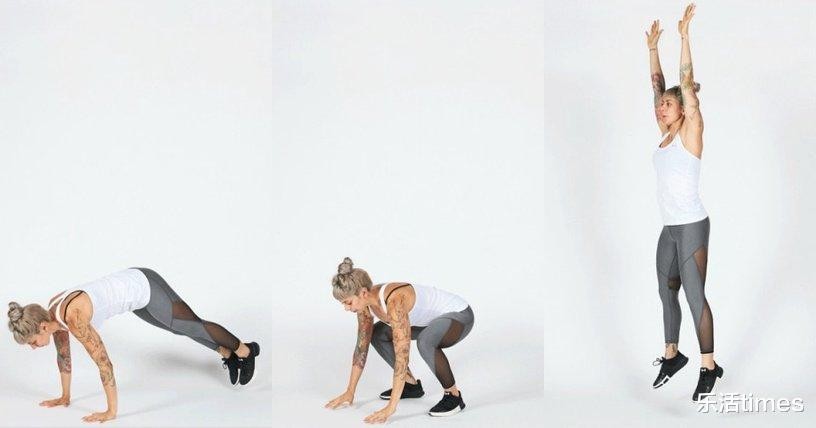 波比跳简单拆解来说,就是结合了深蹲与跳跃。(这也是为什么能有效快速燃脂~)
