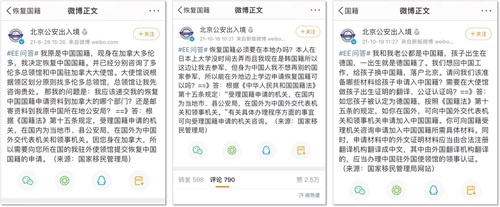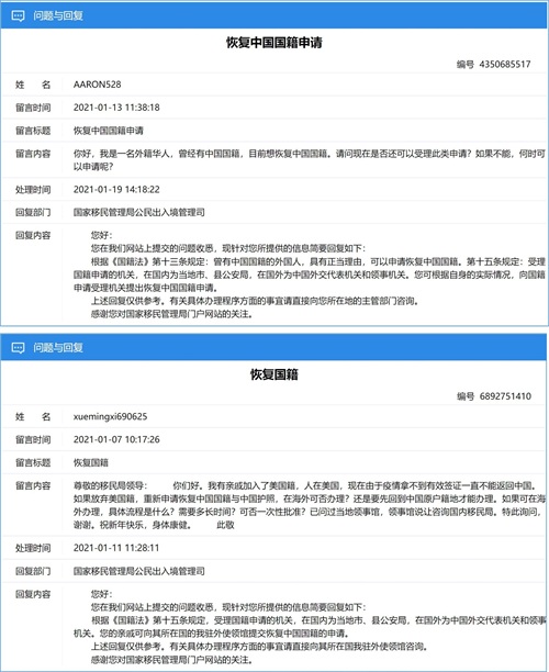 其次,网上也可以搜索到关于恢复国籍的咨询,说明恢复国籍是一项正常的业务,只不过数量比较少而已。
