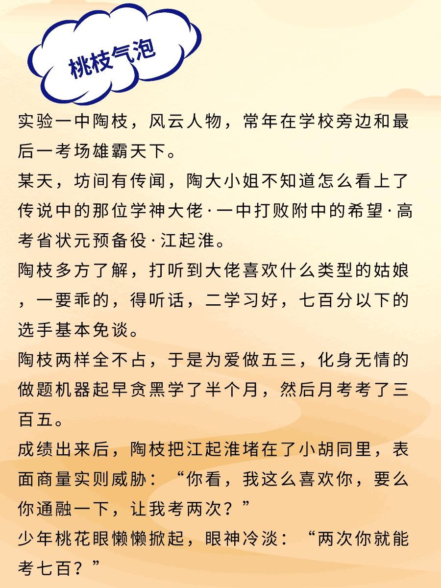 陶枝与江起淮是相互欣赏的,但陶枝是第一主动者,学霸与学渣的故事,就这么开始了。
