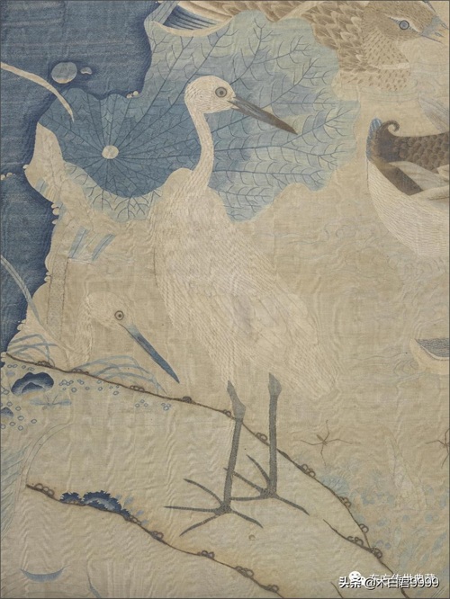 南宋.朱克柔《莲塘乳鸭图》,缂丝艺术品,纵107.5cm*横108.8cm,现藏于上海博物馆。