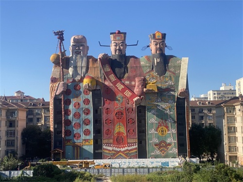 独家:河北天子大酒店近景“福禄寿”三星彩塑矗立