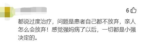 还有的网友说,都说过度治疗,问题是患者自己都不放弃,亲人怎么会放弃!