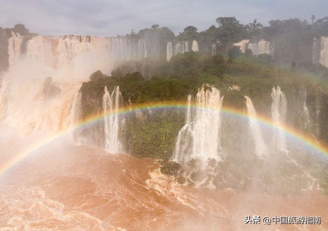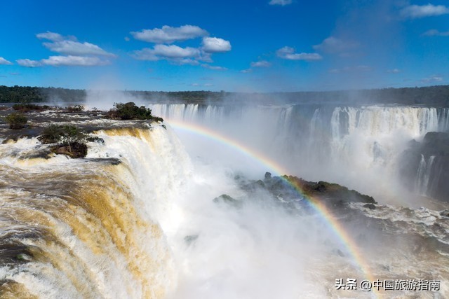 伊瓜苏瀑布位于阿根廷与巴西的边界,是世界最宽的瀑布,也是南美洲最大的瀑布。瀑布位于伊瓜苏河上,该河是巴拉那河的主要支流,连接着巴西高原与阿根廷潘帕斯草原。伊瓜苏瀑布的宽度约2700米,最高处达82米。瀑布的水流被岩石和岛屿分割成275个独立的瀑布,其中最大的被称为“魔鬼喉”,宽度约150米,高度约82米。